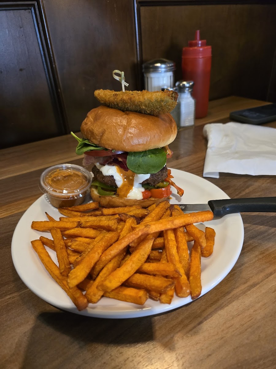 We came through on a vacation recently and this place was awesome. Service was really good and it has a unique atmosphere with a metal roof? Odd but kind of cool, trades people will get me. We each had a different burger, I had a chicken with bacon, kid had a fancy bacon, mushroom something and my wife had a classic bacon cheeseburger and they were all awesome. Fries were really good too, air fried or something. Even my kids grilled cheese kids meal was on garlic toast instead of bread. Little things make this a huge hit.