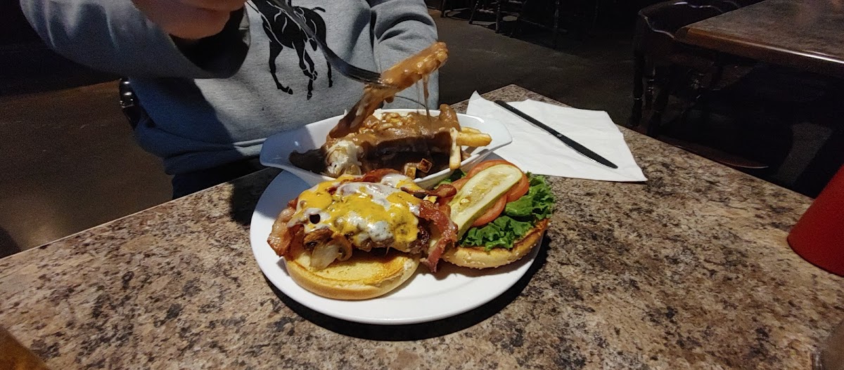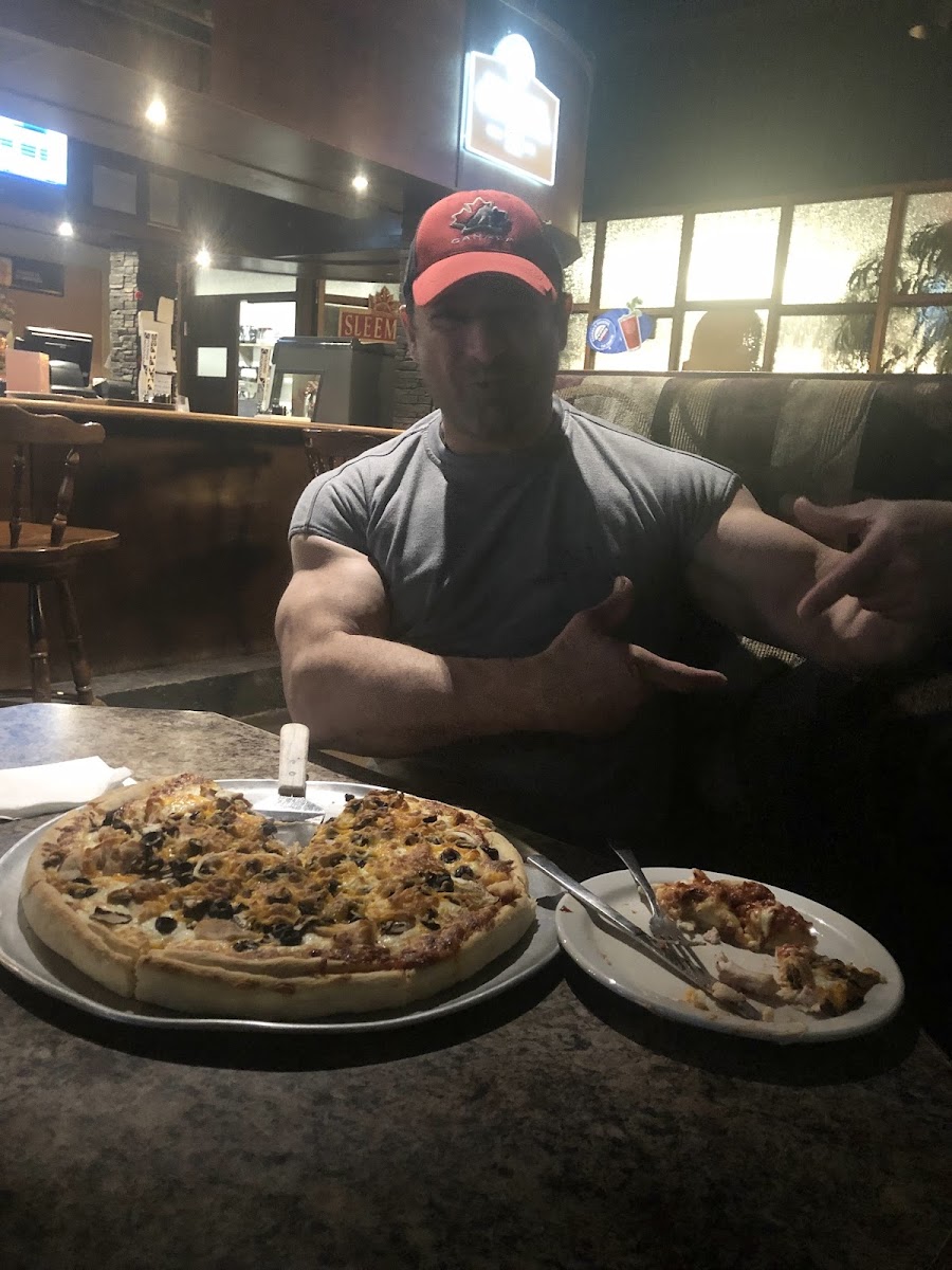 Amazing food. Had the phily cheese steak poutine, bacon cheese burger and an order of hot wings and was very satisfied with it all! Juicy wings, tender steak, huge portions. Will be coming back Updating another year after. Their starter perogies were nice and hot and fresh and delicious. Their portions are huge as always, loves the chicken fingers and fettuccine Alfredo. The price of a medium pizza is crazy! $21.99 for a loaded pizza! Supper and lunch for tomorrow