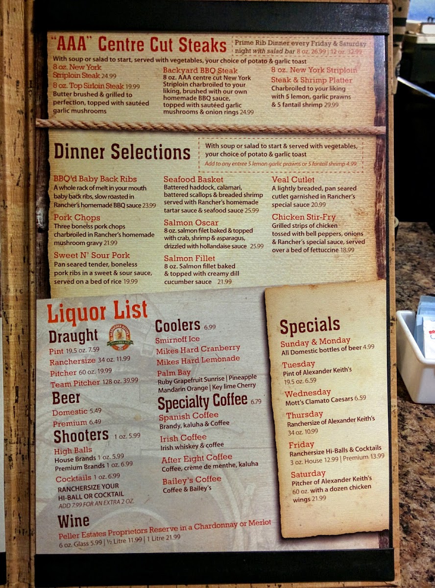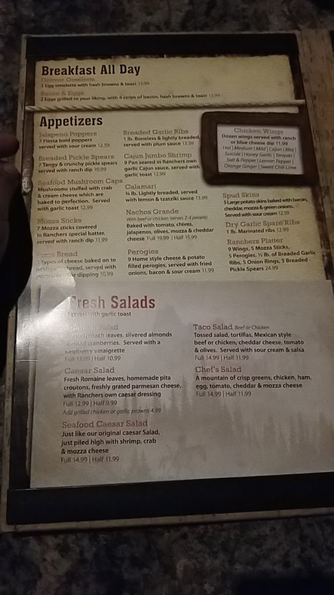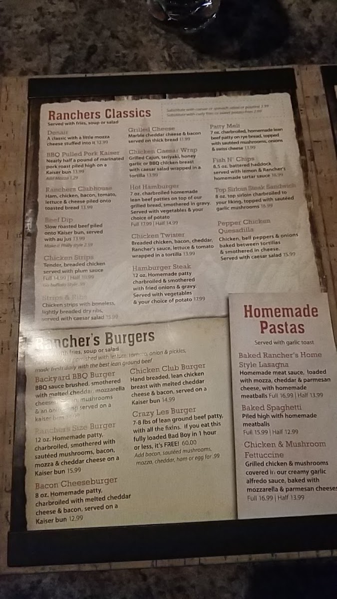 Ranchers Sports Bar & Grill Menu